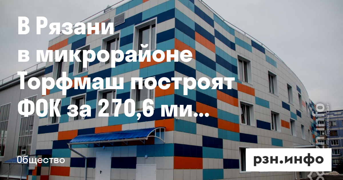 В Рязани в микрорайоне Торфмаш построят ФОК за 270,6 миллиона рублей