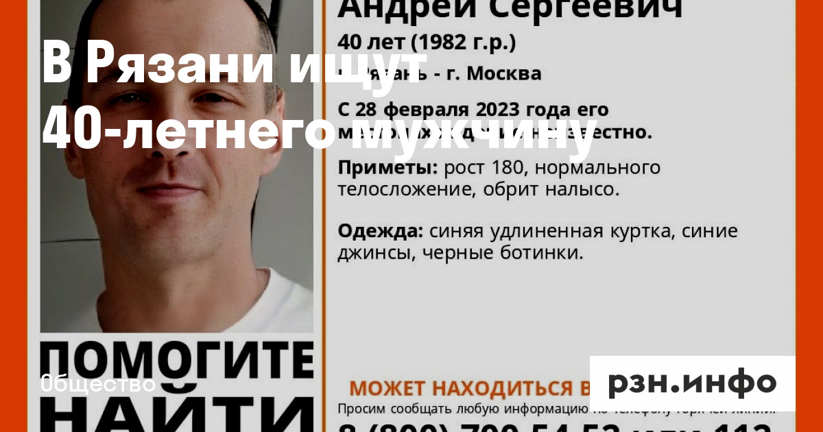 В Рязани ищут 40-летнего Андрея Белобаба. Об этом сообщили в поисково-спасательном отряде «».