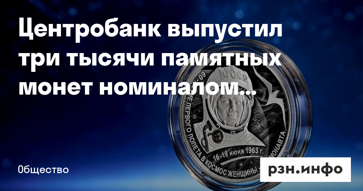 Банк России выпускает в обращение памятные серебряные монеты номиналом 3 рубля в честь «60-летия первого полета в космос женщины-космонавта». Об этом сообщает ТАСС со ссылкой на Центробанк.