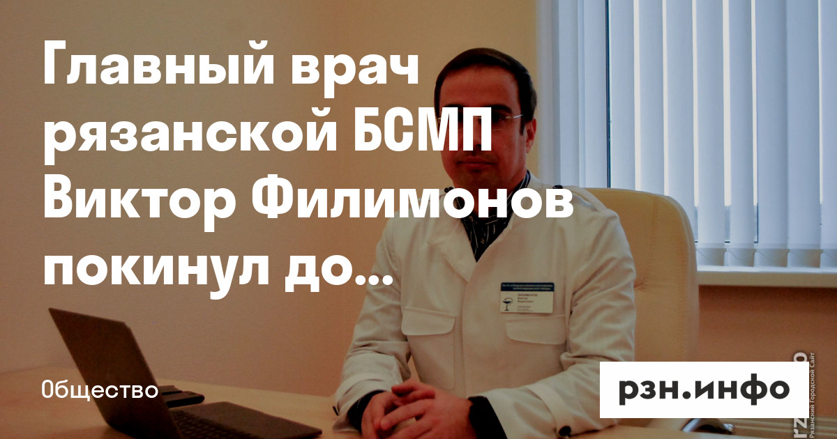 Главный врач рязанской БСМП Виктор Филимонов покинул должность. Об этом РЗН. инфо сообщил собственный источник.