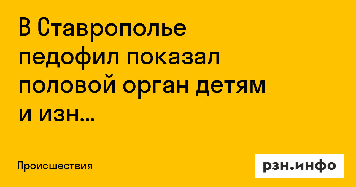В Ставрополье педофил показал половой орган детям и изнасиловал девочку. Об этом сообщает РЕН ТВ.