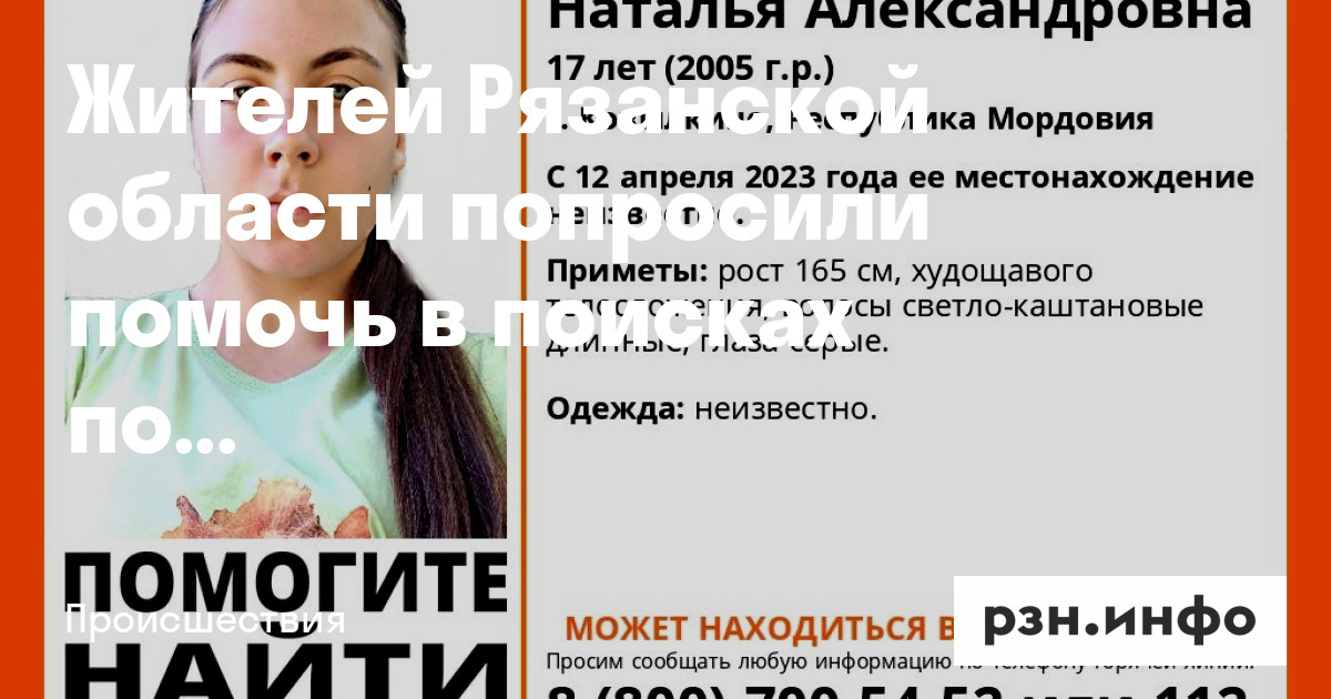 В Мордовии в городе Ковылкино пропала 17-летняя Наталья Афоничкина. С 12 апреля ее местонахождение неизвестно. О поисках сообщают волонтеры Уточняется, что девушка может находиться в Рязани или Рязанской области.