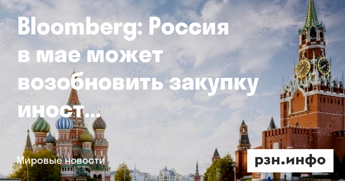 Россия в мае может возобновить закупку иностранной валюты для своих резервов. Об этом во вторник, 2 мая, пишет Bloomberg.