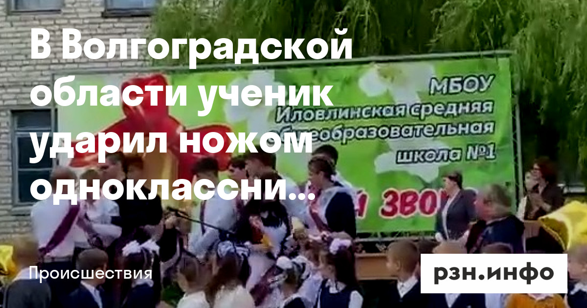 В поселке Иловля Волгоградской области 23 мая ученик 11-класса ударил одноклассницу перочинным ножом во время линейки в честь последнего звонка. Об этом сообщает РИА Новости со ссылкой на источник в правоохранительных органах.