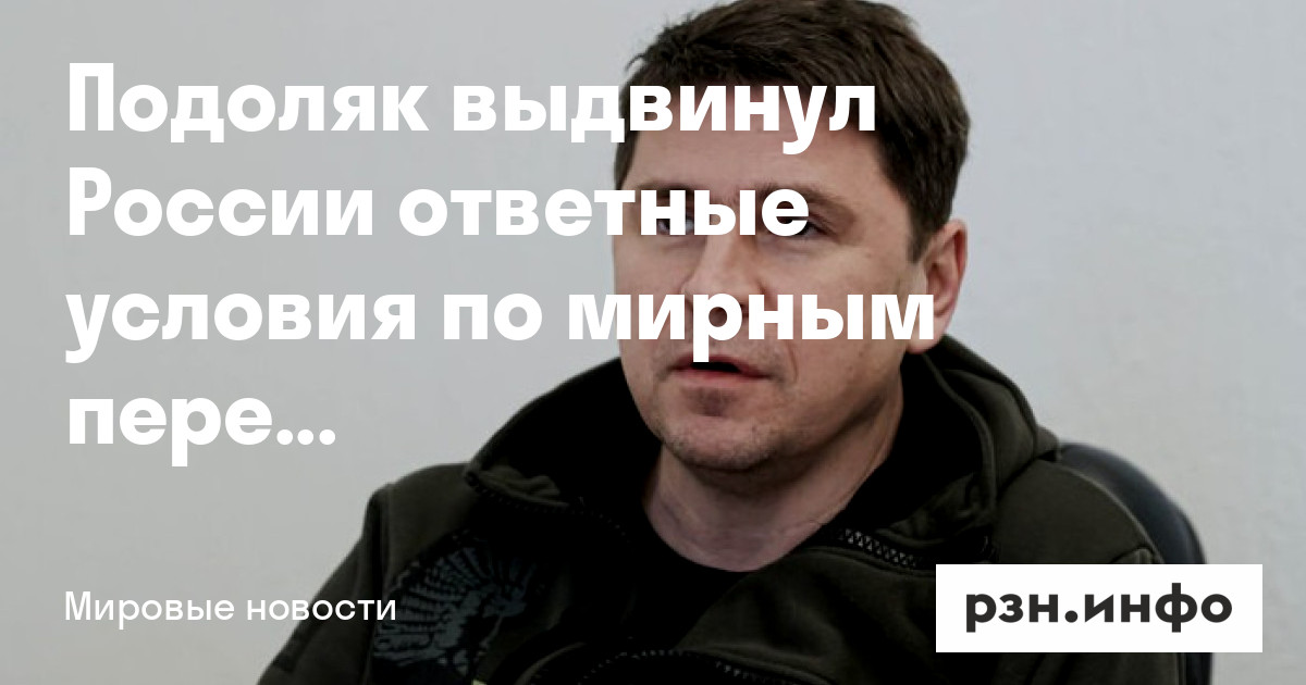 Советник главы офиса президента Украины Михаил Подоляк в Twitter выдвинул России встречные условия, при которых Киев примет мирные переговоры. До этого замглавы МИД России Михаил Галузин заявил, что одним из условий достижения мира является отказ Украины от вступления в НАТО и ЕС, сообщает