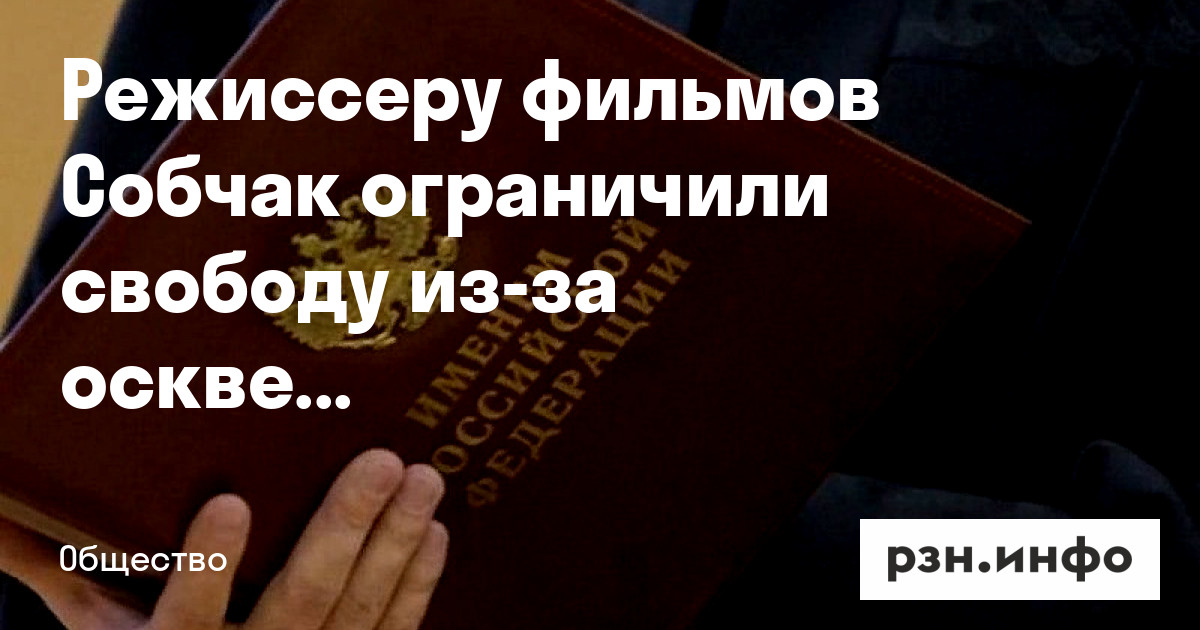 Режиссеру фильмов Собчак ограничили свободу из-за осквернения памятника в Касимове. Об этом в среду, 3 мая, ТАСС.