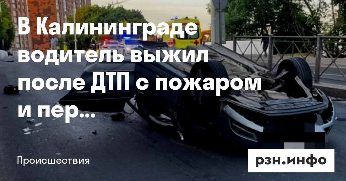 В Калининграде водитель выжил после ДТП с пожаром и переворотом