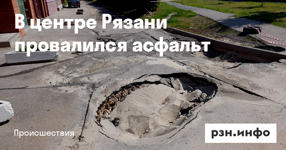 В центре Рязани провалился асфальт. Об этом 13 июня сообщили очевидцы.