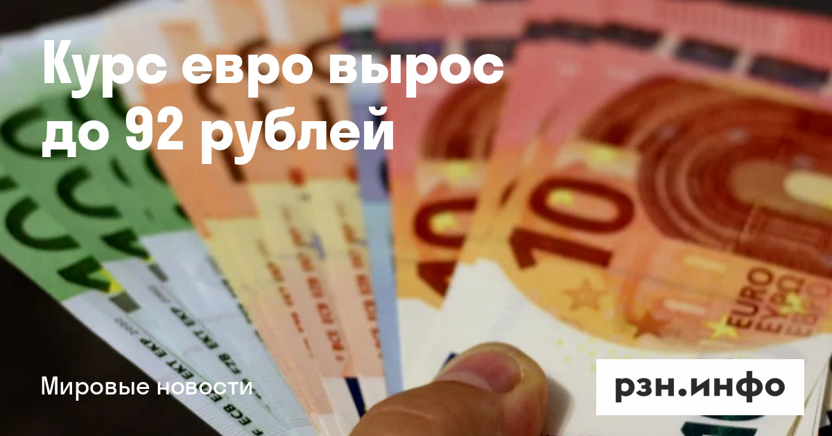 На Мосбирже курс евро составляет 92 рубля. Об этом 16 июня пишет Telegram-канал «РИА Новости».