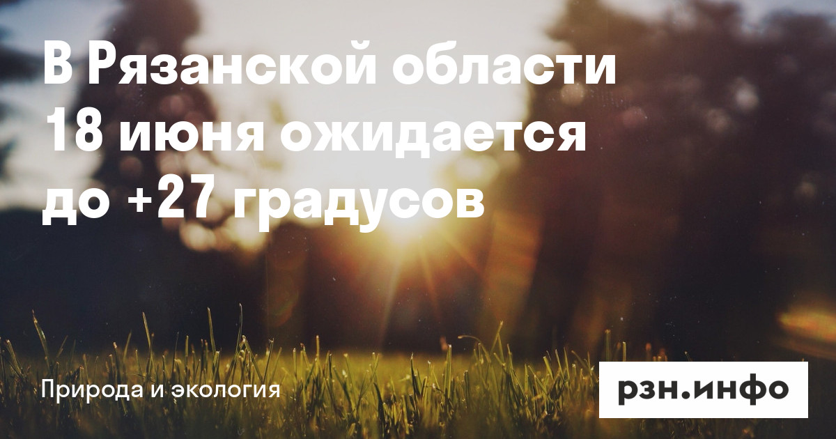 В Рязанской области в воскресенье, 18 июня, температура воздуха ночью составит +9, +14 градусов, днем +22, +27 градусов. Прогноз погоды опубликован на сайте регионального ГУ МЧС.
