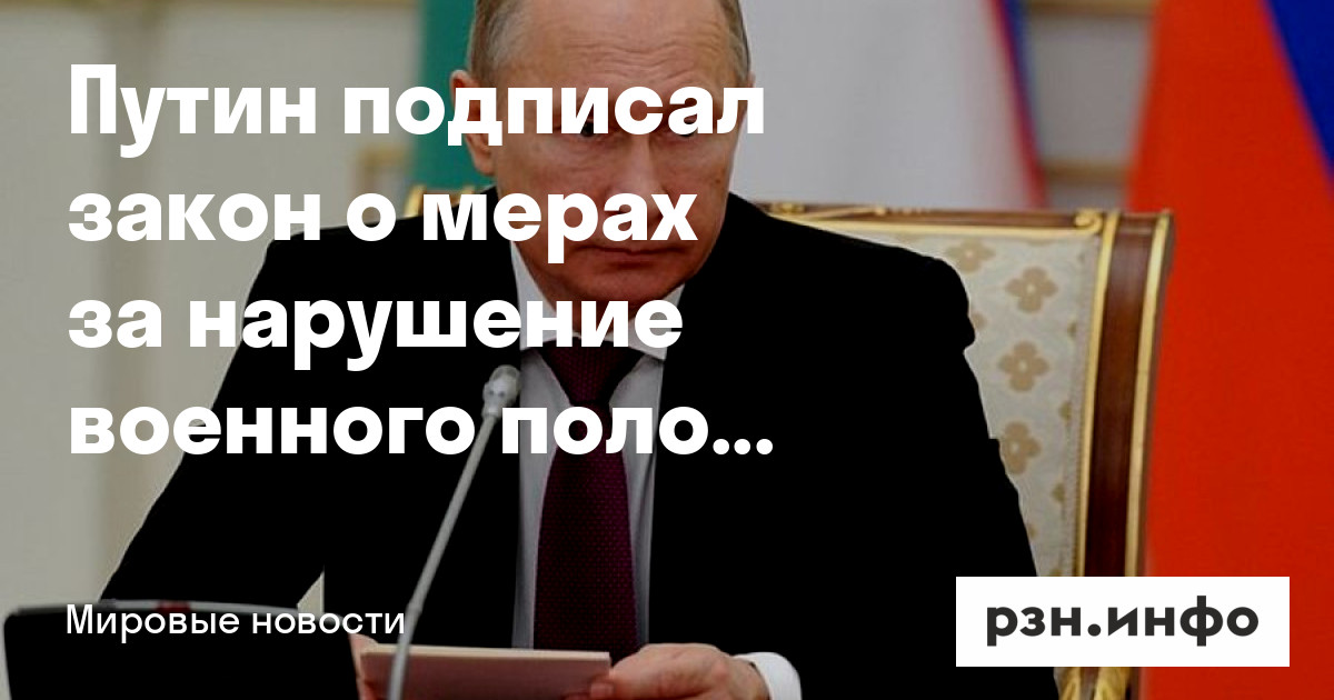 Президент Владимир Путин подписал закон о задержании на 30 суток за нарушение военного положения. Это следует из , который размещен на официальном портале правовой информации.