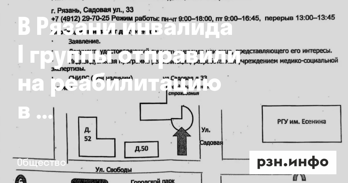 В Рязани инвалида I группы отправили на реабилитацию в учреждение, которое оказалось закрыто. Об этом 28 июня пишет .