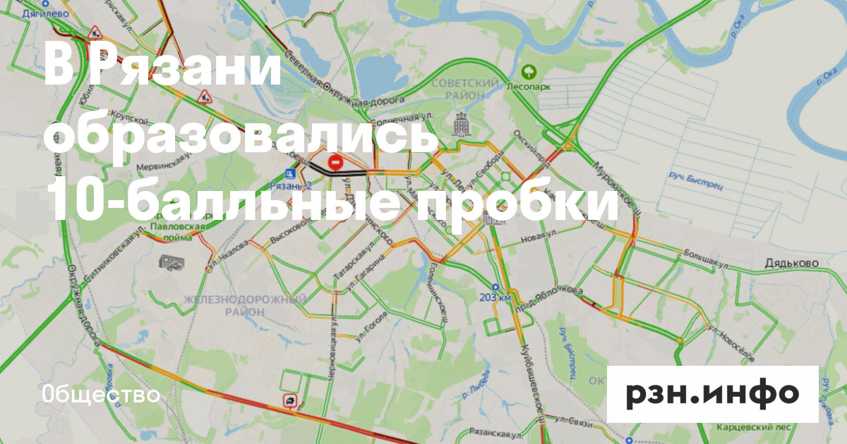 В пятницу, 30 июня, в Рязани образовались 10-балльные пробки. Об этом свидетельствуют данные сервиса «Яндекс. Карты».