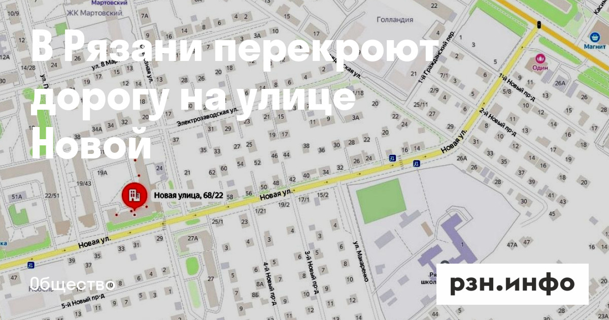 В Рязани перекроют дорогу на улице Новой