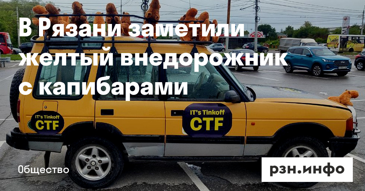 Фотографии желтого внедорожника с капибарами разместили рязанцы в соцсетях. Они насчитали двенадцать плюшевых капибар, которых провезли по городу.