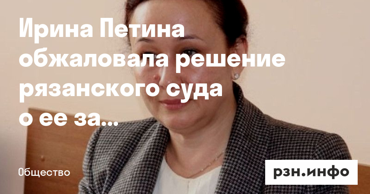 Ирина Петина обжаловала решение рязанского суда о ее заключении под стражу. Об этом РЗН. инфо сообщили в пресс-службе Рязанского областного суда.