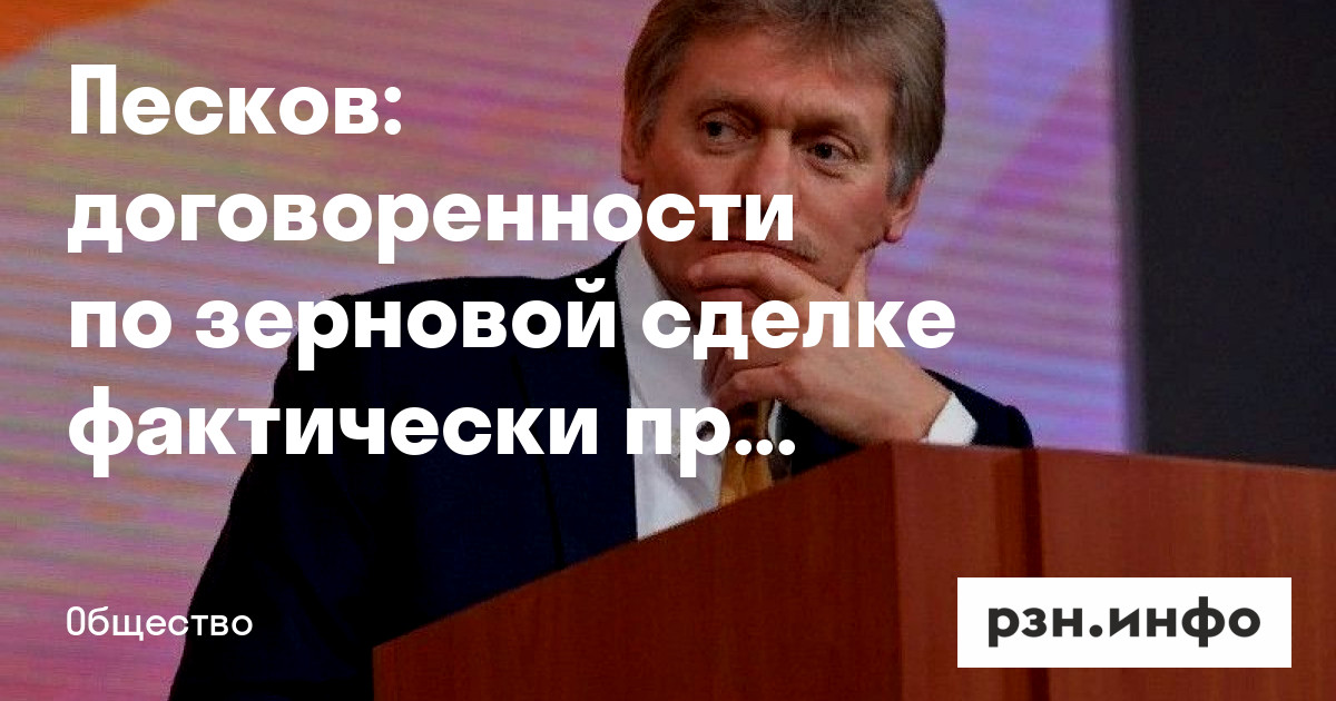 Песков: договоренности по зерновой сделке фактически прекращены, она остановлена