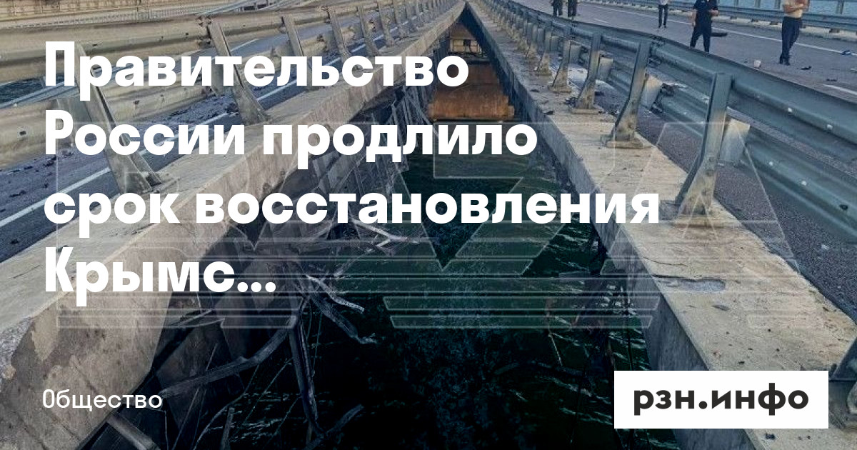 Правительство России продлило срок восстановления Крымского моста. Об этом сообщает ТАСС со ссылкой на распоряжение кабмина.