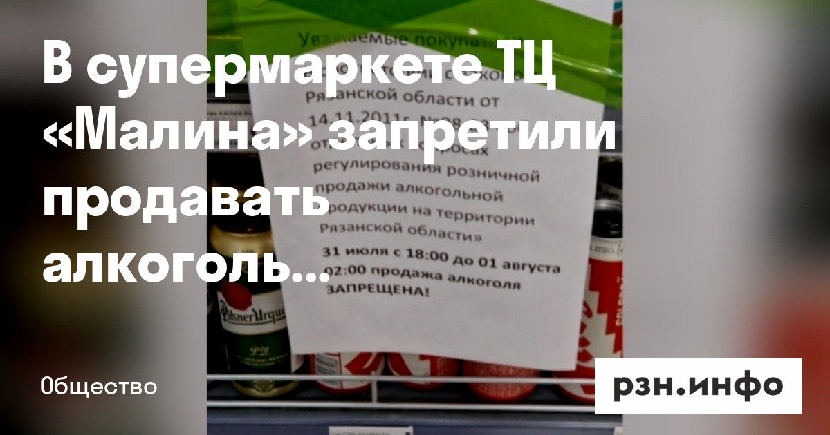 В супермаркете ТЦ «Малина» запретили продавать алкоголь на один вечер. Об этом РЗН. инфо сообщили читатели.