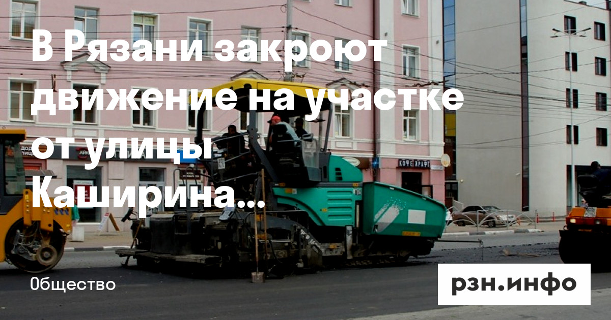 В Рязани закроют движение на участке от улицы Каширина до улицы Павлова
