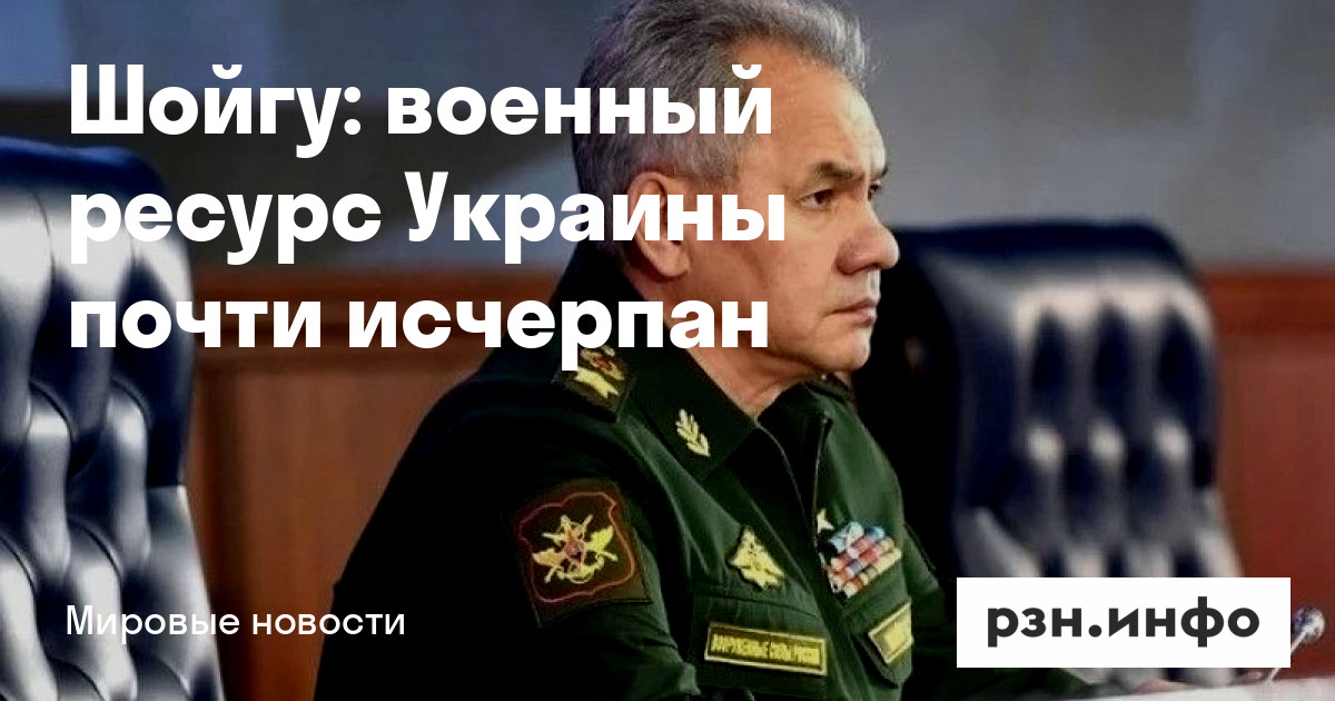Шойгу заявил, что военный ресурс Украины почти исчерпан. Об этом РИА Новости.