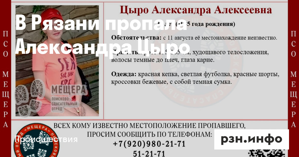 В Рязани пропала Александра Цыро. Об этом сообщили во ВКонтакте в группе поисково-спасательного отряда «Мещера».
