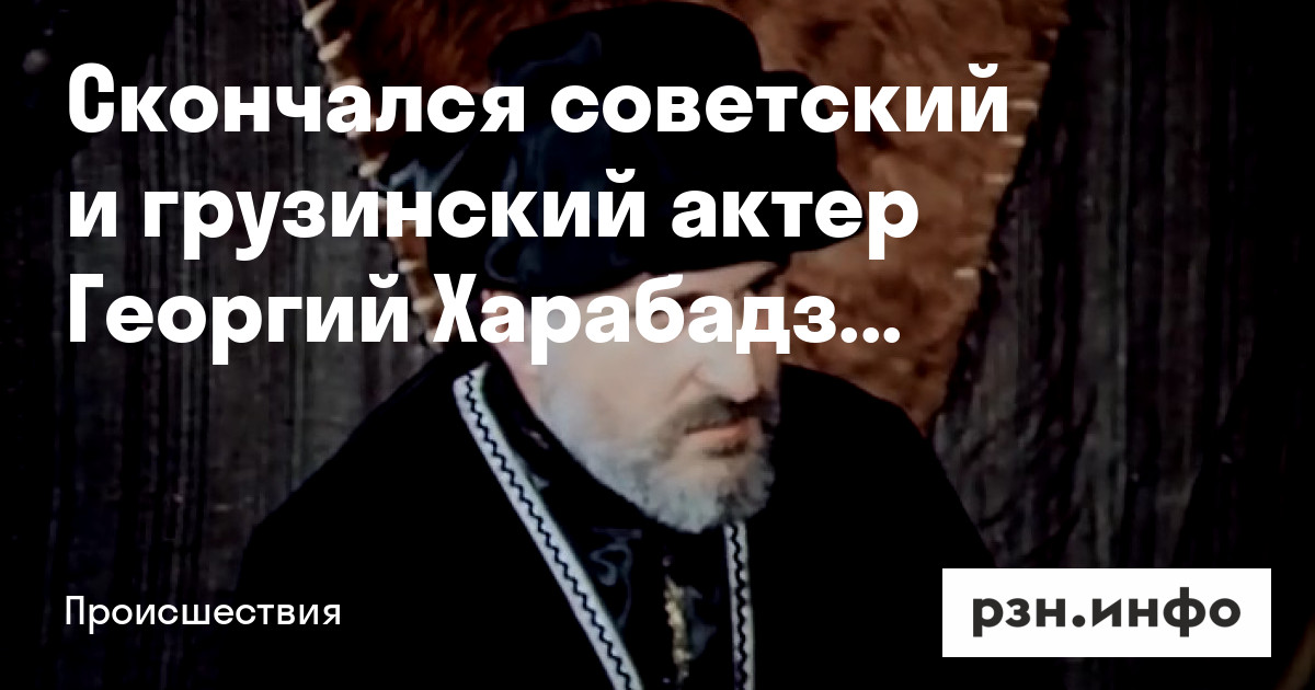 Скончался советский и грузинский актер Георгий Харабадзе. Об этом сообщили в пресс-службе Национального театра имени Шота Руставели.