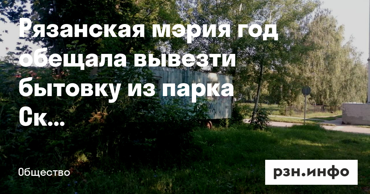 Рязанская мэрия год обещала вывезти бытовку из парка Скобелева, но не сделала этого. За это время у бытовки неизвестные выбили окна и добавили пару надписей.