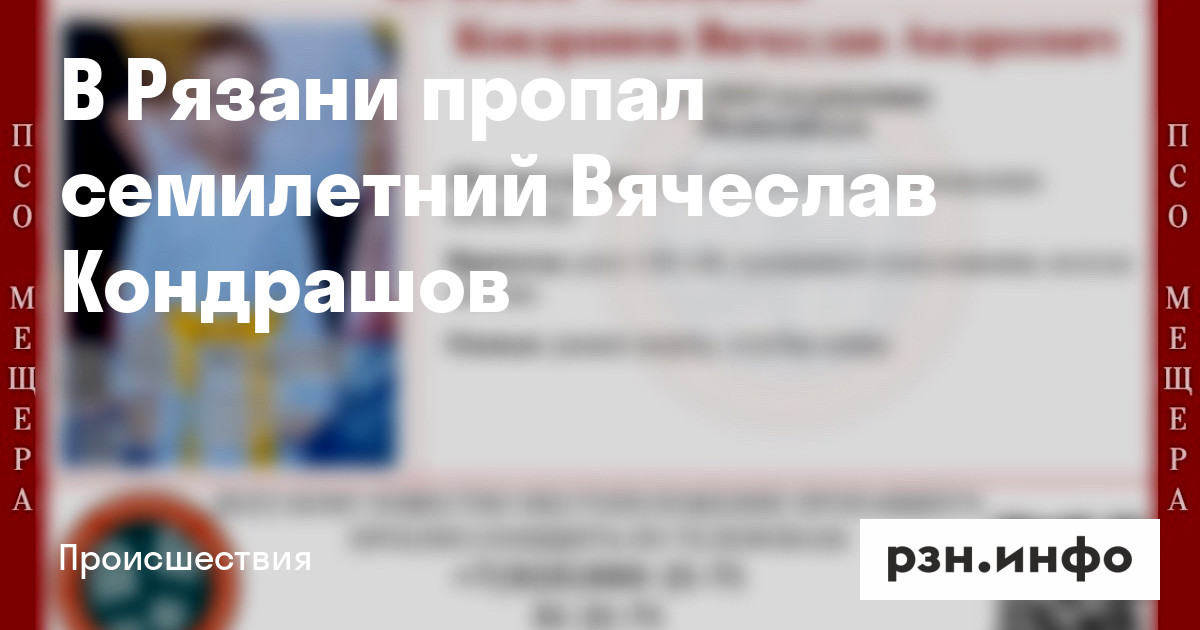 В Рязани пропал семилетний Вячеслав Кондрашов. Об этом сообщили во ВКонтакте в группе поисково-спасательного отряда «Мещера».