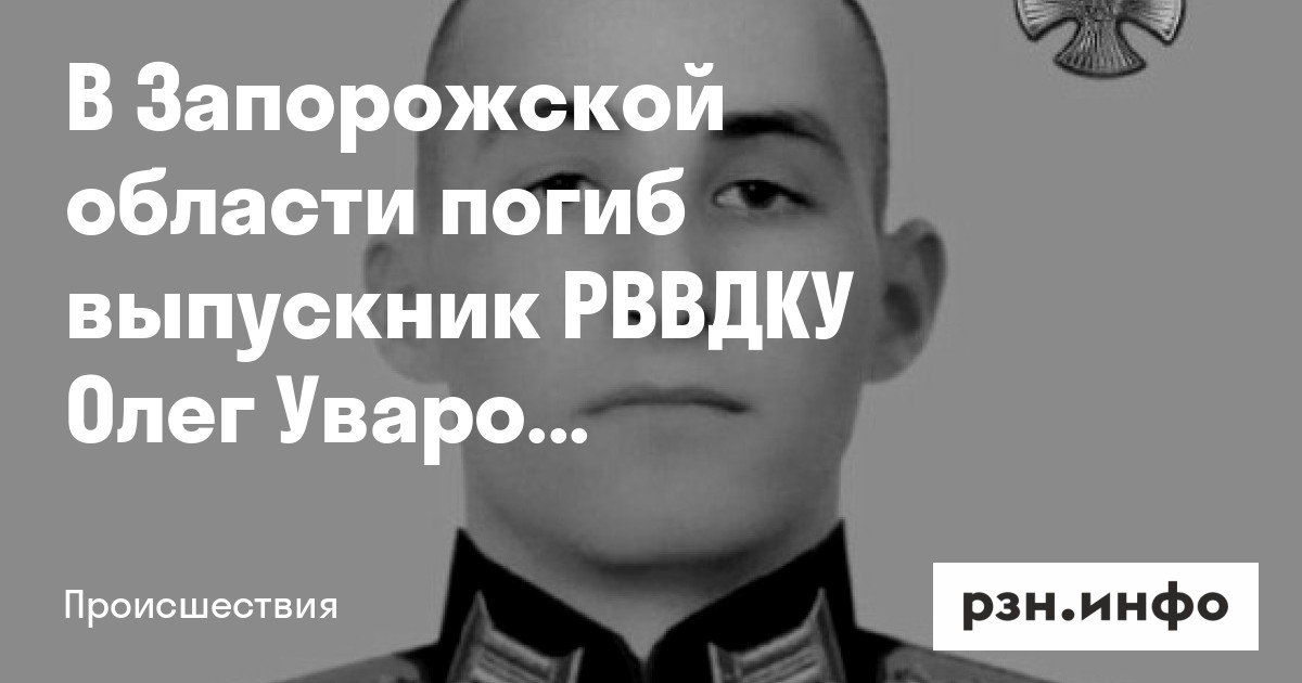В Запорожской области в субботу, 12 августа, погиб выпускник РВВДКУ Олег Уваров. Об этом глава Балашовского района Павел Петраков в своем Telegram-канале.