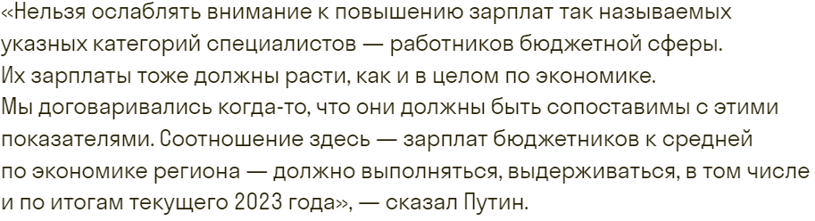 Также он отметил, что зарплаты работников бюджетной сферы должны расти, как и зарплаты россиян в среднем по экономике субъектов России.