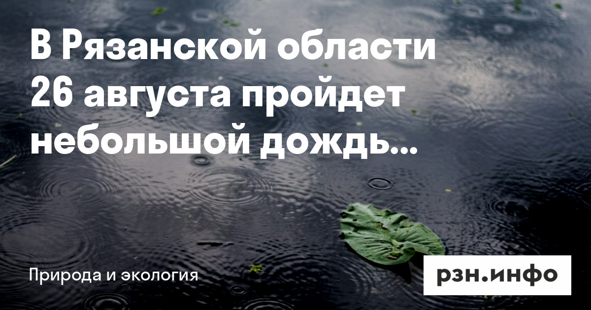В Рязанской области 26 августа пройдет небольшой дождь и похолодает до +4 градусов. Прогноз погоды опубликовали на сайте регионального ГУ МЧС.