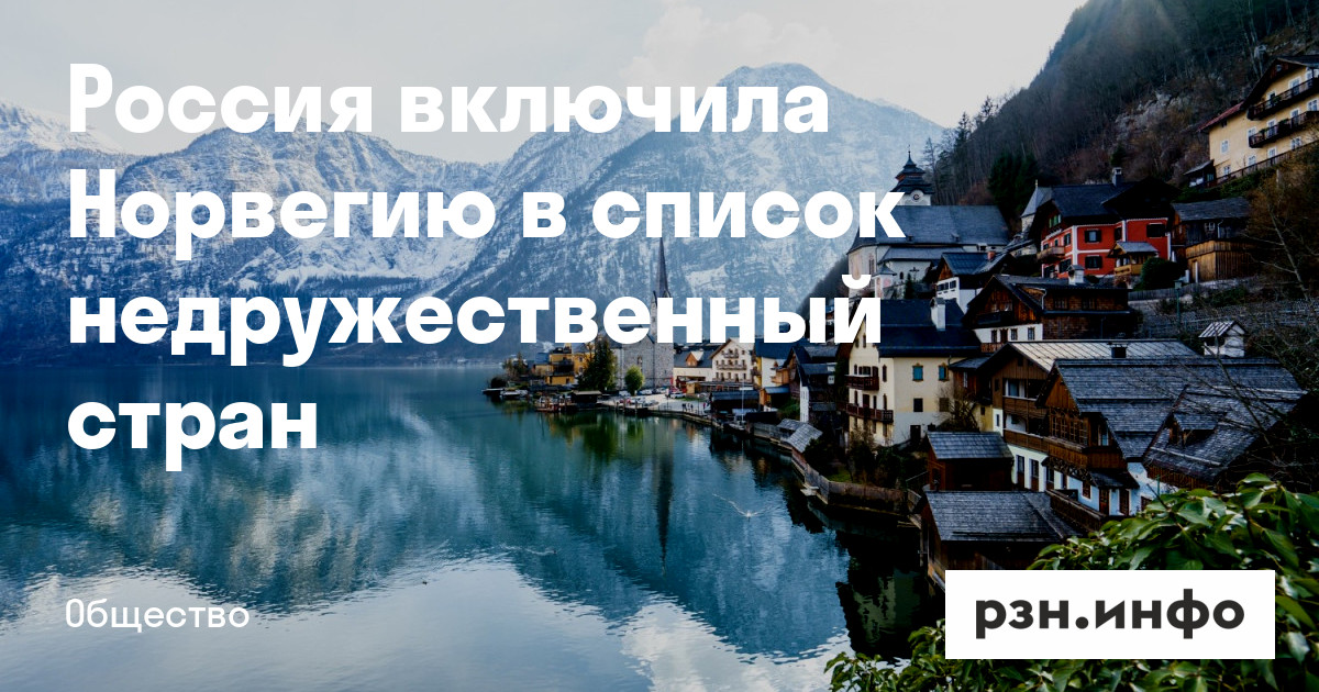 Россия включила Норвегию в список недружественных стран. Об этом сообщает РИА Новости со ссылкой на пресс-службу кабмина.