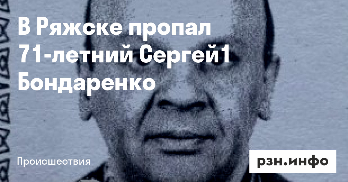 В Ряжске 2 августа пропал 71-летний Сергей Васильевич Бондаренко. Об этом сообщает поисково-спасательный отряд «Мещера».