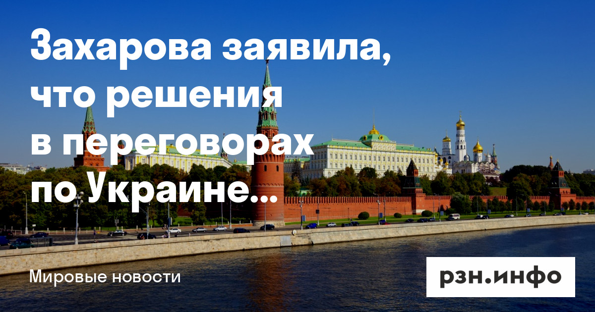 Захарова заявила, что решения в переговорах по Украине без участия России будут абсурдом. Об этом заявила представитель российского МИД Мария Захарова.