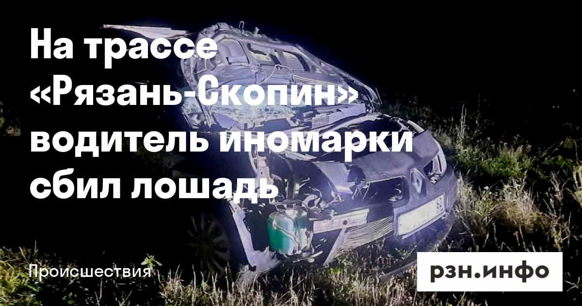ДТП произошло 17 сентября, примерно в 22.00, на 69-м километре трассы «Рязань-Скопин», в километре от поворота на Новомичуринск. На автомобиль Renault с поля выскочила лошадь.
