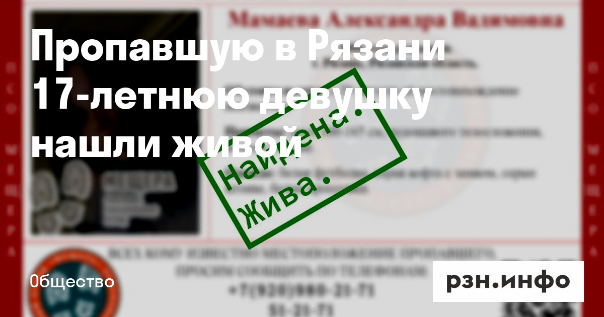 Пропавшую в Рязани 17-летнюю девушку нашли живой