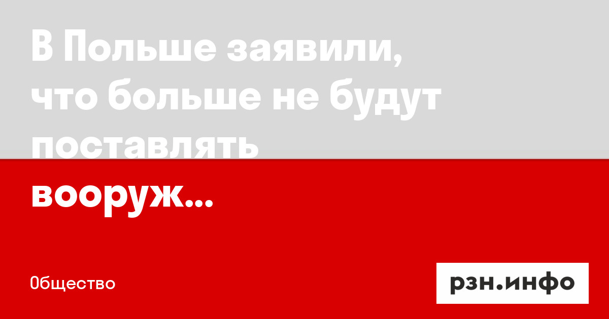 Премьер Польши Матеуш Моравецкий заявил, что Варшава перестала поставлять вооружение на Украину. Об этом сообщает ТАСС.
