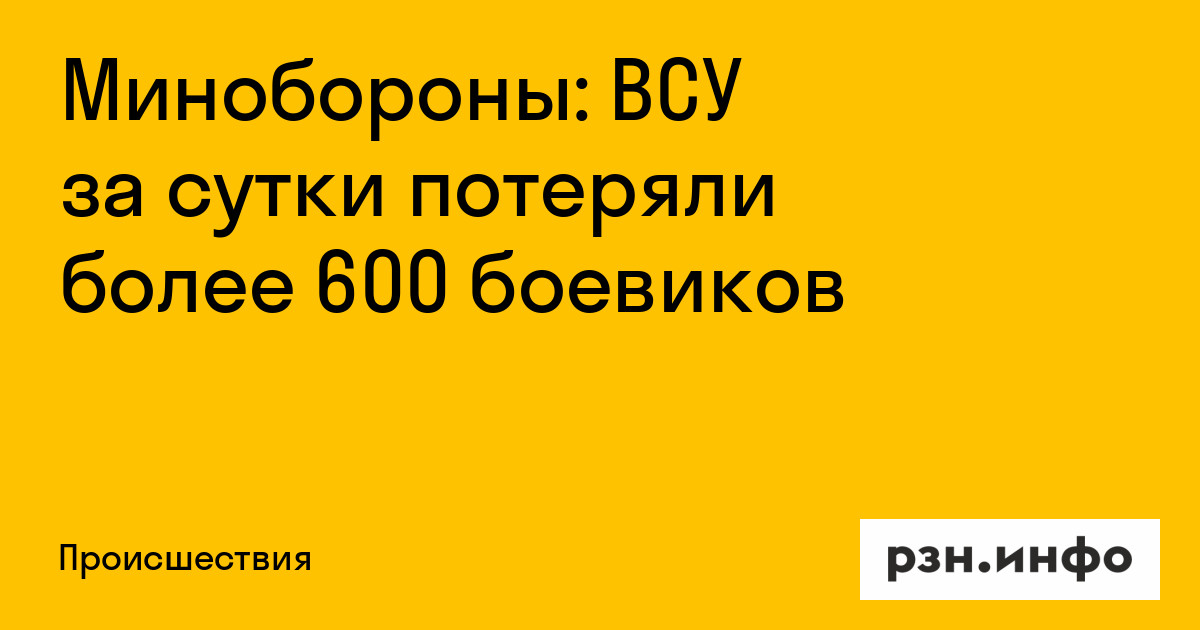 Минобороны: ВСУ за сутки потеряли более 600 боевиков