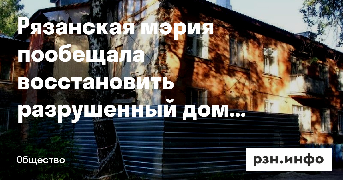 Рязанская мэрия заявила, что разрушенный дом № 47 корпус 2 на улице Пушкина восстановят к 20 декабря. Об этом ведомство сообщило в комментариях под постом Павла Малкова.