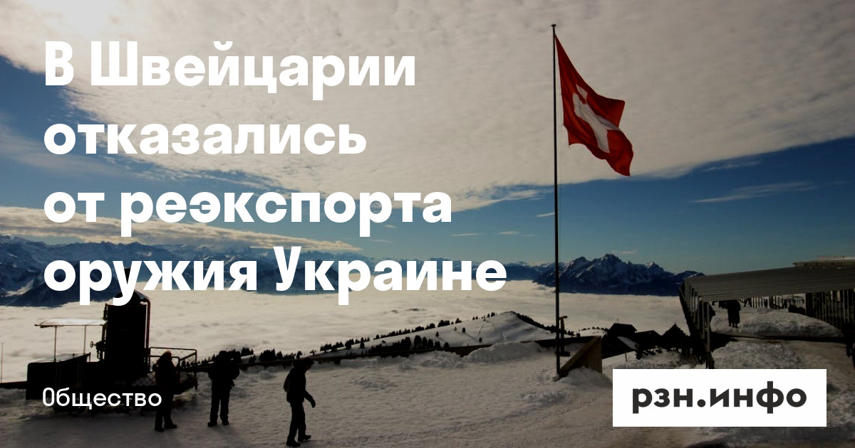 Национальный совет Швейцарии отклонил предложение по реэкспорту оружия на Украину. Об этом пишет РЕН ТВ со ссылкой на газету «20 Minuten».
