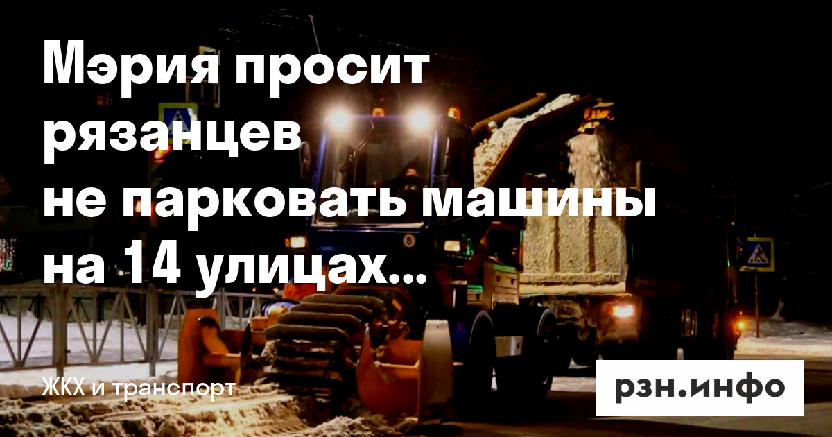 Мэрия просит рязанцев не парковать машины на 14 улицах города. Сообщение появилось на сайте ведомства.