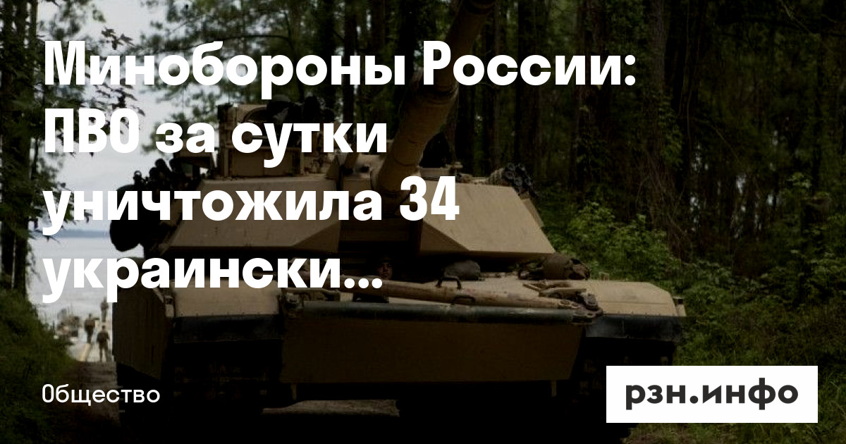 Минобороны России: ПВО за сутки уничтожила 34 украинских беспилотника