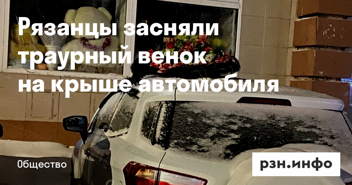 Рязанцы засняли траурный венок на крыше автомобиля. Фото появилось в группе «Подслушано у водителей Рязани».