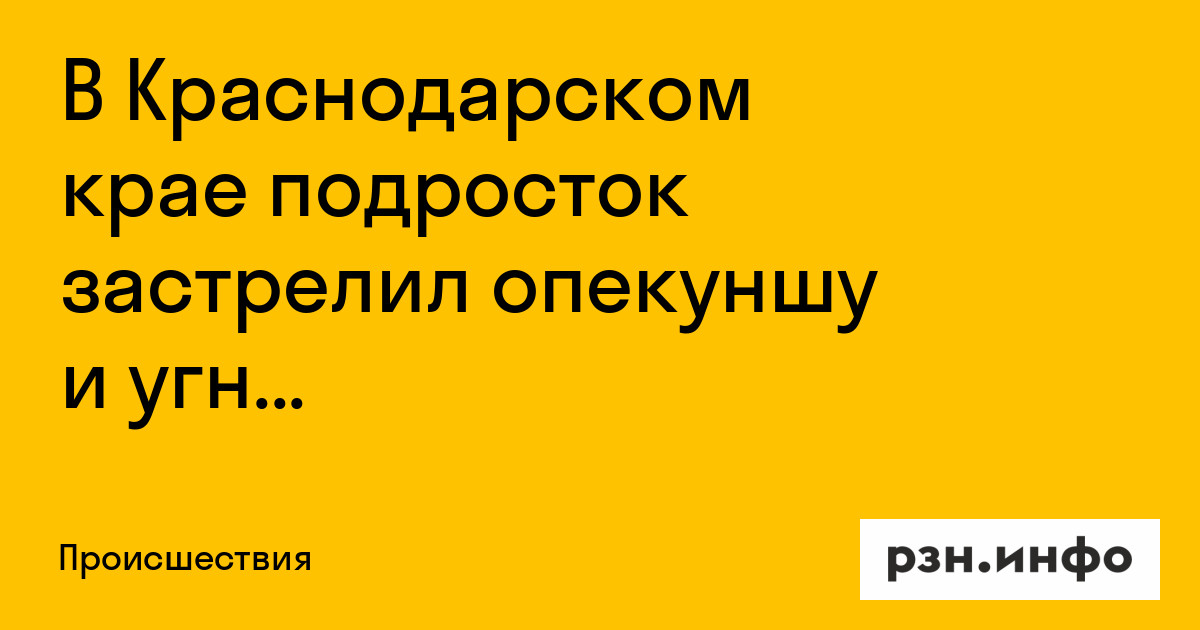 В Краснодарском крае подросток застрелил опекуншу и угнал автомобиль ее мужа. Об этом сообщило со ссылкой на краевое СУ СК РФ.