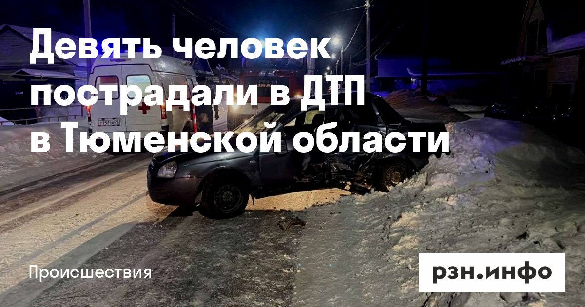 Девять человек пострадали в ДТП в Тюменской области. Об этом сообщило издание со ссылкой на местную Госавтоинспекцию.