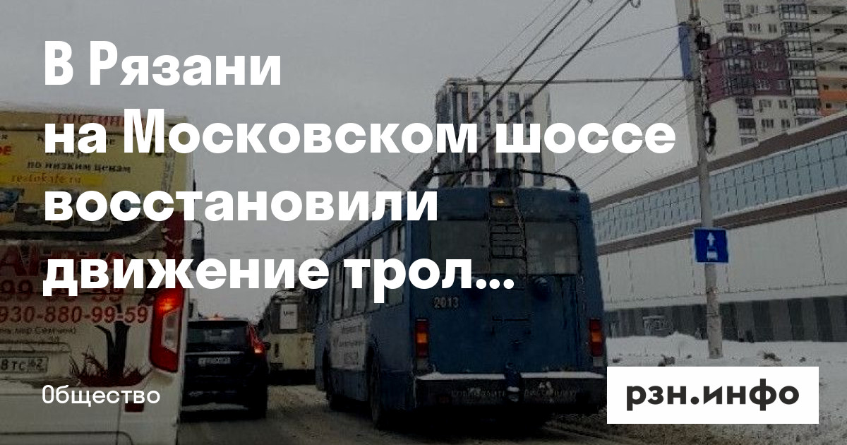 В Рязани на Московском шоссе восстановили движение троллейбусов. Об этом РЗН. Инфо сообщили в пресс-службе мэрии.