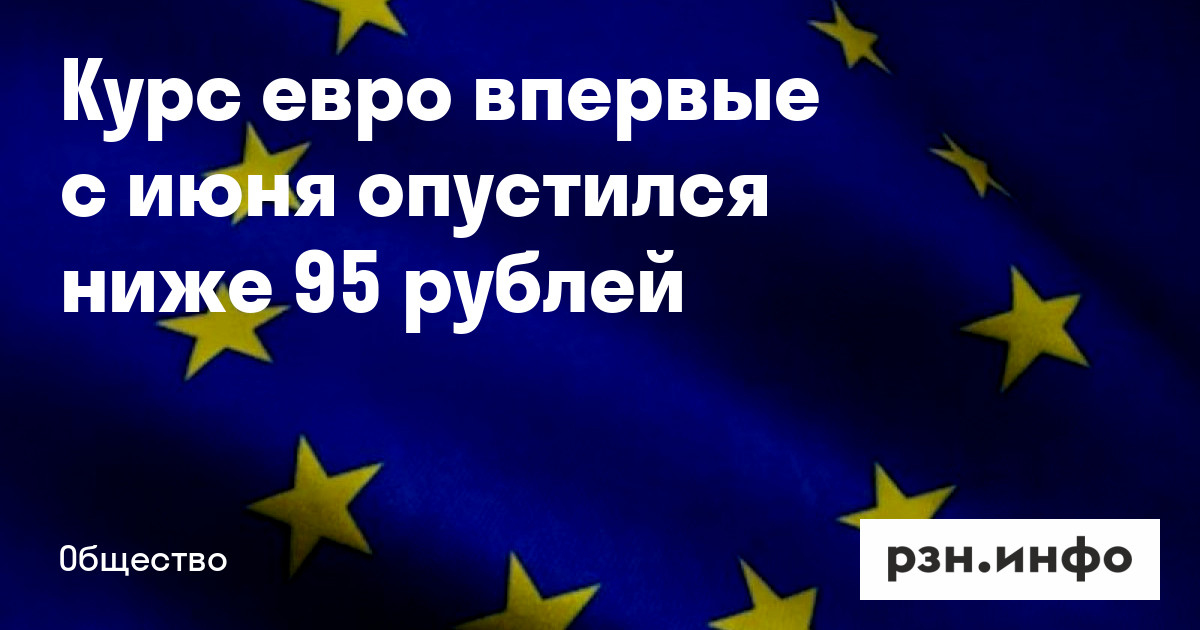 Курс евро впервые с июня опустился ниже 95 рублей