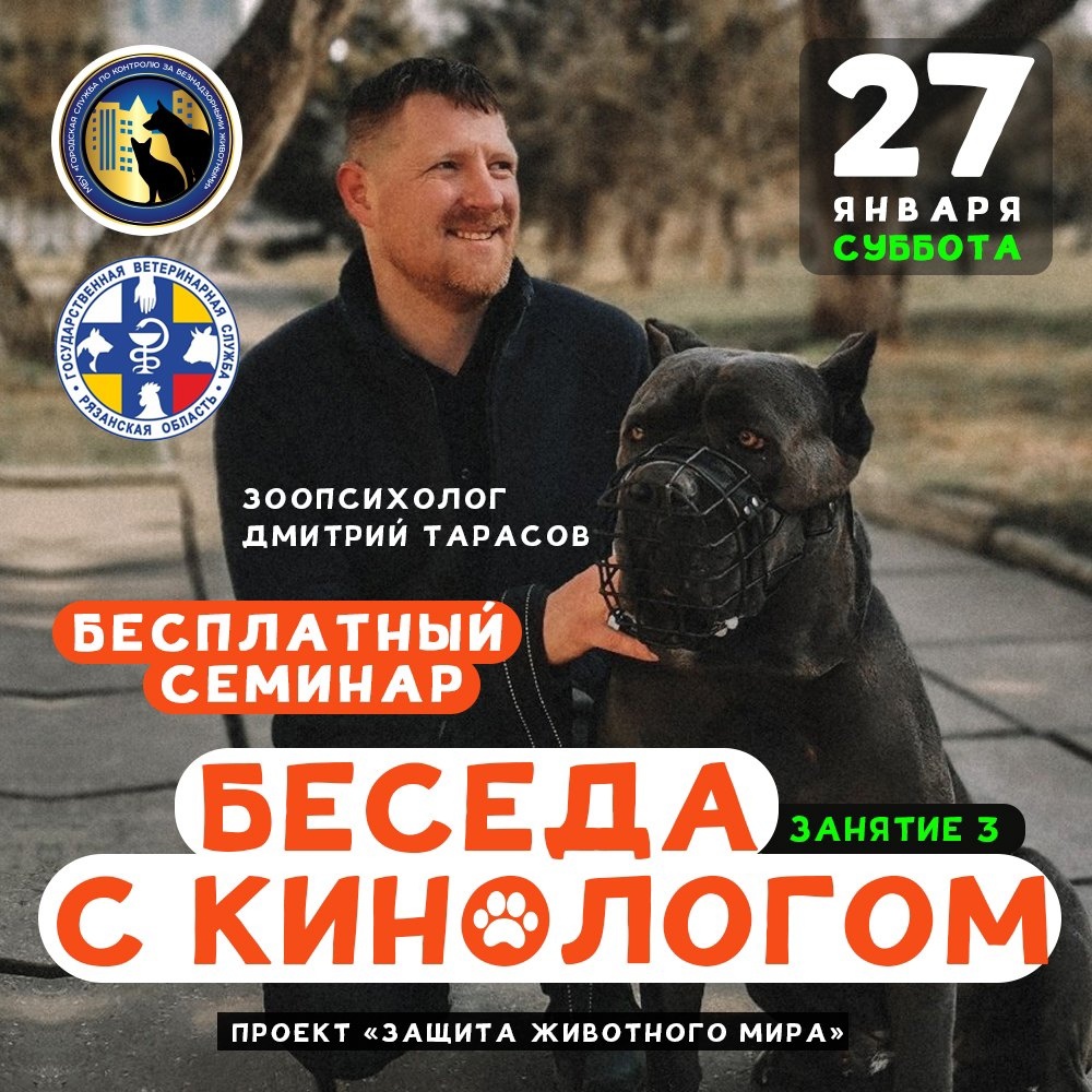 Вести мероприятие будет кинолог и зоопсихолог Дмитрий Тарасов. Обязательна предварительная запись по номеру телефона