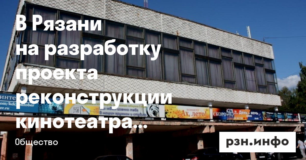 В Рязани объявили тендер на разработку проектной документации кинотеатра «Октябрь» на 9,9 миллиона рублей. Информацию разместили на сайте Госзакупок.